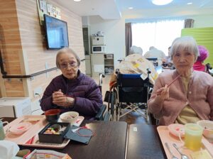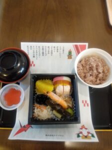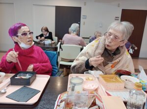 彩りが良く、おいしそうなおせちが黒い箱の中にたくさん詰まっていました😚ご利用者様は大変喜んで召し上がっておりました😘