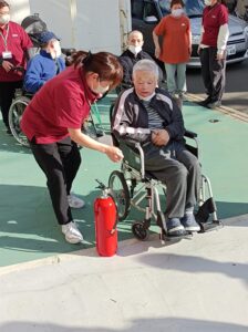 最初はご利用者様も恥ずかしがっていましたが試してみると消火器の重さや
