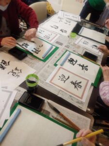 隣にいる方とおしゃべりをしながら習字を楽しまれる姿を見て、従業員は和やかな気分になり、「やってよかった」と喜んでおりました😆😆😘