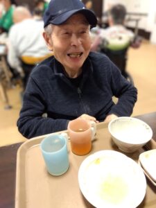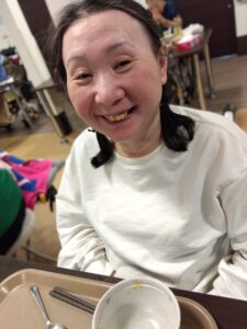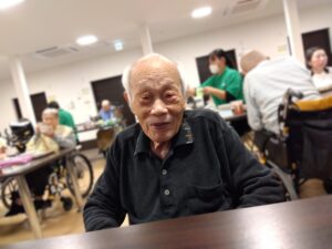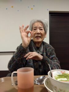 同じテーブルの方と談笑されたり、職員に手伝ってもらったりしながら