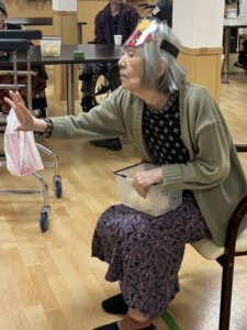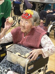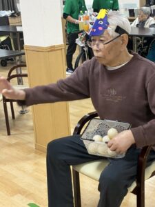 鬼のお面をつけて思いっきり投げる方、少し恥ずかしそうにしながら投げる方など、利用者様それぞれの表情がとても印象的でした。