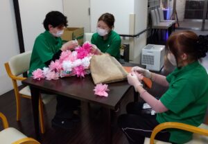 館内で春らしさを味わっていただくために桜の飾りつけを行いました!