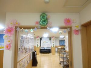 4月15日に迎える開設8周年の飾りもあります。