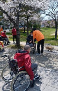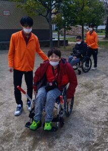 公園までの約15分の移動時間も屋外歩行訓練の一環です。