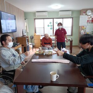 新しいレクリエーション、タオル引きじゃんけんの様子です!