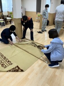 災害時にはいろいろな事が起きて、感染も広がりやすいです。その為完成対策をしっかりとできるように教えて頂きました😊