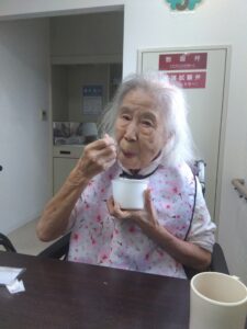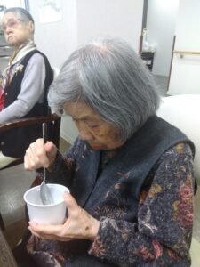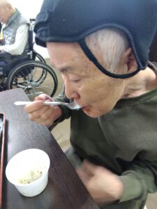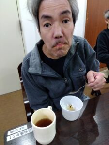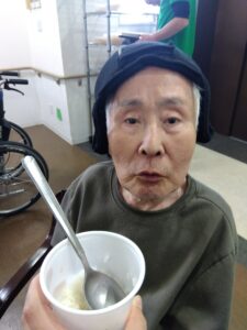 備蓄品のおかゆをご利用者様に召し上がって頂きました😊