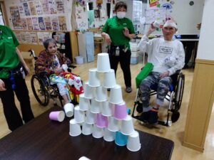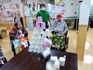 紙コップタワーを