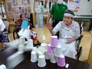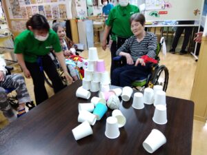 次は、【紙コップ倒し】です!