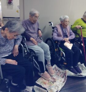 新聞紙で足の体操をしました。