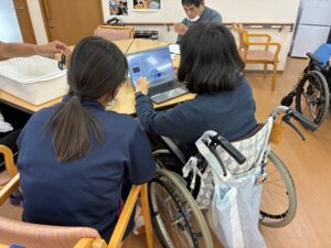 利用者さんと関わりながらコミュニケーションを学んで頂いています。