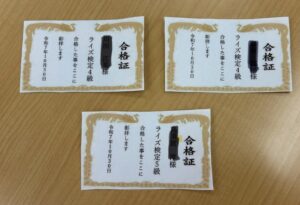 デジタルスキルコースでは、先週に実施したライズ検定の結果発表がありました。