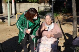ご利用者様のU様は過去に保育士をされておられ子供たちの走り回っている姿を見て、懐かしいと思いを馳せておられました。
