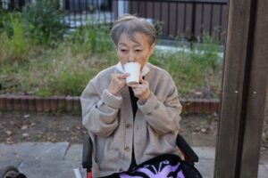 公園では、暖かいコーヒーと暖かい緑茶を提供し、終始和やかな雰囲気の中で過ごして頂けました。。