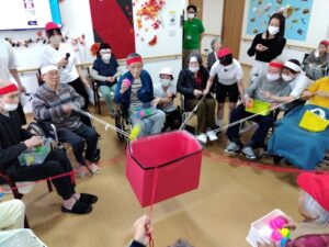 相手チームからの妨害のもと、ただ玉を入れるだけではない、玉入れに大盛り上がり😂