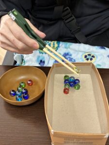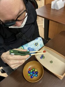 今回は箸を使ってビー玉を移動させるトレーニングで~す!!