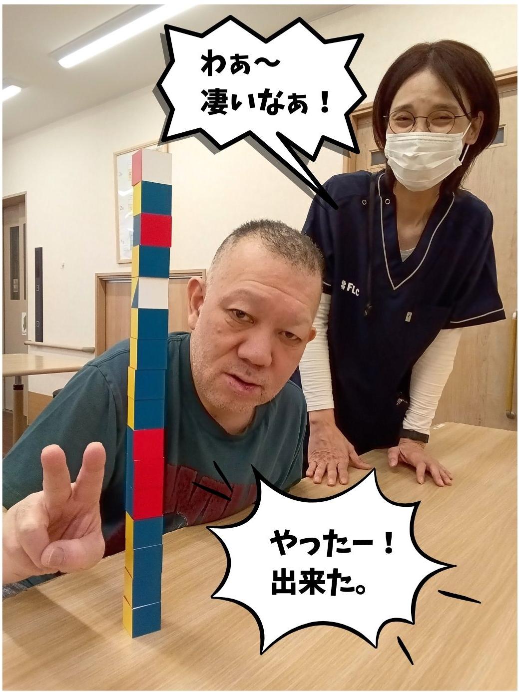 ブロック積みで指先の訓練とバランス感覚のリハビリ